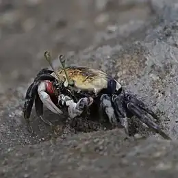 - ↑ Shih, Hsi-Te; Ng, Peter K. L.; Davie, Peter J. F.; Schubart, Christoph D.; et al. (2016). "Systematics of the family Ocypodidae Rafinesque, 1815 (Crustacea: Brachyura), based on phylogenetic relationships, with a reorganization of subfamily rankings and a review of the taxonomic status of Uca Leach, 1814, sensu lato and its subgenera". The Raffles Bulletin of Zoology. 64.