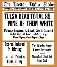 - ↑ "1921 Tulsa Race Massacre". Tulsa Historical Society & Museum. November 2018. Retrieved April 26, 2021.