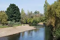 The Tumut River rises on the northern face of Mount Jagungal in the Snowy Mountains at 1,430 metres (4,690 ft) and flows generally north by west, joined by twelve tributaries including the Doubtful Creek, Happy Jacks Creek and Goobarragandra River before meeting its confluence with the Murrumbidgee River, at Darbalara near the town of Gundagai; descending 1,210 metres (3,970 ft) over its 182-kilometre (113 mi) course.[3][6]