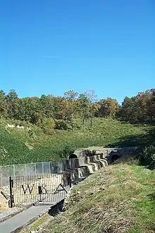 The cut stone northwest face of the W&A tunnel, now preserved as a walking trail.