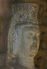 There are 638 stone Buddhas in five main grottoes, which were chiselled in the Northern Zhou (577–581) and Tang dynasty (613–907) and lie along the mountain's eastern edge, close to the summit. All of the smaller grottoes are now empty. The main grottoes are mostly intact with the exception of many of the smaller-Buddha's heads. They are protected by cages. The tallest statue, that of a seated Buddha, still survives. It is over 7 m high, making it the largest in the province. The smallest statues at the site are about 10 cm (4 in) tall. The site was placed under national protection in 1988.