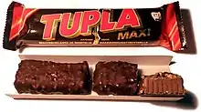 Tupla is a Finnish chocolate bar made by Cloetta. It consists of milk chocolate with a nougat-flavoured filling, coated with bits of almond.