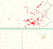orange = "Midwest Division" stores (Indiana & Ohio)