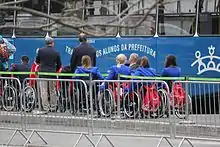 Every participant at the Paralympics has their disability grouped into one of five disability categories; amputation, the condition may be congenital or sustained through injury or illness; cerebral palsy; wheelchair athletes, there is often overlap between this and other categories; visual impairment, including blindness; Les autres, any physical disability that does not fall strictly under one of the other categories, for example dwarfism or multiple sclerosis.[1][2] Each Paralympic sport then has its own classifications, dependent upon the specific physical demands of competition. Events are given a code, made of numbers and letters, describing the type of event and classification of the athletes competing. Some sports, such as athletics, divide athletes by both the category and severity of their disabilities, other sports, for example swimming, group competitors from different categories together, the only separation being based on the severity of the disability.[3]