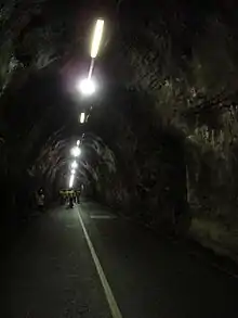 The underlying geology of the mountain is granite, covered with blanket bog, which is a habitat for heather, purple moor grass and sphagnum moss.[7] A number of alpine plants grow near the summit: dwarf willow, cowberry, crowberry, fir clubmoss and common bilberry.[8] To the north-east of the summit, at the head of Glendasan valley, is Lough Nahanagan (Irish: Loch na hOnchon, meaning 'Lake of the Water Monster'),[9] a corrie lake carved by a glacier at the end of the last ice age.[10]