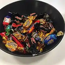 Twist is a bite-sized confectionery produced by Freia (owned by Mondelez), primarily for the Scandinavian market. Twist is sold in bags, and each bag contains a variety of pieces, mostly consisting of chocolates with some sort of filling in the center. New pieces are added and old ones discontinued frequently. Only two pieces, Lakris (licorice) and Cocos (coconut-filled chocolate), have existed since the product was launched. The name Twist refers to the way each piece is wrapped.