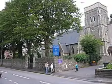 The Church of England parish church is St Michael, on Two Mile Hill Road.[6][3] The church was constructed in 1848 in the Gothic Revival style. St Michael's is one of Bristol's seven Commissioners' churches. In 1994 it was granted grade II listed status by English Heritage.[7] Two Mile Hill was the location selected by John Wesley, one of the founders of Methodism, as the location for a Methodist school and preaching house.[8] The area also housed the first Primitive Methodist Church chapel in the United Kingdom. It was opened in 1841 but was remodelled in 1849 when it was taken over by the Salvation Army.[9]