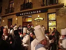A Txoko (Basque pronunciation: [ˈtʃoko]) is a typically Basque type of closed gastronomical society where men come together to cook, experiment with new ways of cooking, eat and socialize. It is believed that over 1000 of these societies exist; the town of Gernika, Spain, for example, with around 15,000 inhabitants, has nine txokos with some 700 members in total.[1][2] Txoko can be found not only in Spain but in almost any city with a significant number of Basques[3]
