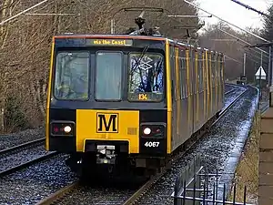 Prior to opening, two prototypes, 4001 and 4002, underwent several years of testing from June 1975 on a 1.5-mile (2.4 km) test track in Backworth.[8][9] The track was built on the route of an old mineral wagonway formerly part of the North Tyneside Steam Railway. It had a two-lane car shed and a mock station platform, along with a short tunnel section which consisted of concrete tunnel segments laid at ground level;[10] the tunnel was later demolished to allow testing of prototype cars for the Hong Kong MTR, also built by Metro-Cammell, these cars having a very large profile. The test track was closed in 1980, and it is now home to the Stephenson Railway Museum.[10]