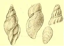 Original drawing of a shell with protoconch and operculum of Typhlodaphne purissima