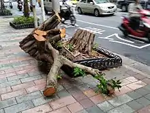 A cut-off tree in Taipei, originally tilted by Typhoon Dujuan