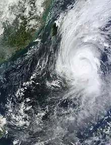 ![]() Typhoon Krosa at peak intensity in the South China Sea on November 2 | |