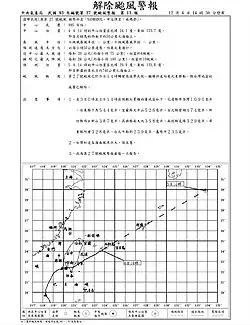 In Taiwan, the Central Weather Bureau issued a land warning for the island in advance of the typhoon. Potential impacts, which would likely be enhanced by the East Asian Monsoon, prompted Taiwanese president Chen Shui-bian to postpone political marches and campaign rallies intended for the upcoming presidential elections.[17] In anticipation for the typhoon, schools and businesses in southern and eastern Taiwan were closed, along with the delaying of rail and air traffic. Kaohsiung International Airport was closed during the morning of December 4.[18]