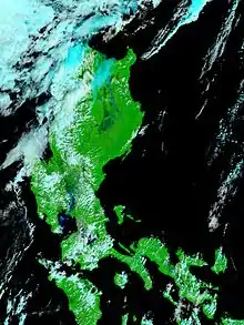 The first Philippine provinces to be impacted by the typhoon were Albay and Catanduanes, which suffered power outages after strong winds tore down power lines.[22][23] One person was killed in Virac, Catanduanes after being electrocuted by a felled power line.[24] In order to prevent more widespread outages, electrical service in some locations was deliberately shut down. Landslides triggered by Nanmadol in Aurora killed 25 people.[25] On the Bicol Peninsula, eight fatalities occurred due to drowning, electrocution, or hypothermia.[26]