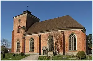 The church has a brick exterior and built in a style of a mixture of gothic and renaissance with the tower facing west. It was built during 1638–1640 by riksdrots Gabriel Oxenstierna, who also built Tyresö castle. The church was inaugurated March 9, 1641 with Gabriel Oxenstierna's own burial.