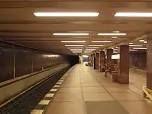 Another renovation project is also under way on the Alexanderplatz–Stadtmitte section. Here the BVG plans to restore Stadtmitte, Hausvogteiplatz and Spittelmarkt stations to their original condition.[12] The renewal of Spittelmarkt station has already been completed. The window gallery has been reopened there and the walls at the rear of the track have been decorated with newly fired ceramic tiles displaying various historical cityscapes.