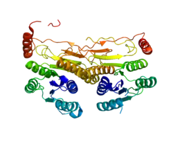 - ↑ Wiemann S, Weil B, Wellenreuther R, Gassenhuber J, Glassl S, Ansorge W, Bocher M, Blocker H, Bauersachs S, Blum H, Lauber J, Dusterhoft A, Beyer A, Kohrer K, Strack N, Mewes HW, Ottenwalder B, Obermaier B, Tampe J, Heubner D, Wambutt R, Korn B, Klein M, Poustka A (Mar 2001). "Toward a Catalog of Human Genes and Proteins: Sequencing and Analysis of 500 Novel Complete Protein Coding Human cDNAs". Genome Res. 11 (3): 422–35. doi:10.1101/gr.GR1547R. PMC 311072. PMID 11230166.