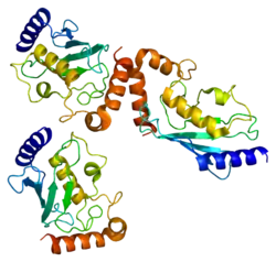 - ↑ Nuber U, Schwarz S, Kaiser P, Schneider R, Scheffner M (Mar 1996). "Cloning of human ubiquitin-conjugating enzymes UbcH6 and UbcH7 (E2-F1) and characterization of their interaction with E6-AP and RSP5". J. Biol. Chem. 271 (5): 2795–800. doi:10.1074/jbc.271.5.2795. PMID 8576257.