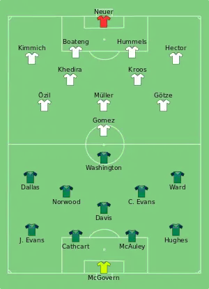 18. 1 2 "Tactical Line-ups – Northern Ireland v Germany" (PDF). UEFA.com. Union of European Football Associations. 21 June 2016. Retrieved 21 June 2016.
