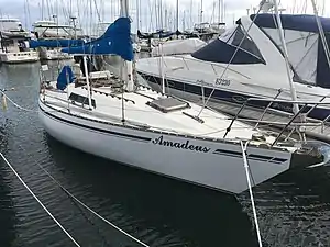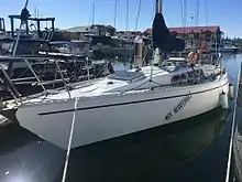 UFO 34 is a cruising and racing fibreglass monohull sailboat class. It is a sloop based on a design by Holman and Pye.[2] The design features a spade rudder and a Bermuda rig with a large, overlapping headsail. Over 150 UFO 34s have been built both in the United Kingdom and Australia.[1]