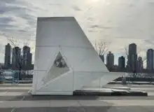 The United Nations Slavery Memorial, officially known as The Ark of Return – The Permanent Memorial at the United Nations in Honour of the Victims of Slavery and the Transatlantic Slave Trade, is an installation at the Visitors' Plaza of the Headquarters of the United Nations in New York City, intended as a permanent reminder of the long-lasting effects of slavery and the Transatlantic slave trade.[1] It was designed by Rodney Leon, a Haitian-American architect, and installed in 2015.[2]