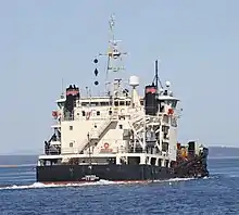 The ship's work routinely takes it to shallow water where ongoing silting requires dredging to restore a channel. This work is hazardous, and the ship has gone aground several times. The ship ran aground at the entrance to the Port of Bandon, Oregon and was stuck on the jetty for several days before she could be floated off.[26] Yaquina hit an uncharted rock ledge while dredging a channel in the Umpqua River on July 27, 1990 which tore a 5-foot by 8-foot hole in its hull. Several compartments flooded and the ship settled into the mud.[18] She was towed to Portland for repairs.[27] She ran aground and was holed while dredging in Willapa Bay, Washington on August 9, 1997. Repairs were estimated at $50,000 to $100,000.[28]
