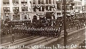 USS Albany sailors on parade during the Portola Festival in San Francisco, California, on 19 October 1909.