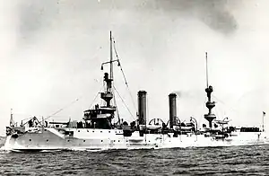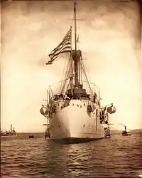 On the evening of 16 April, Albany, Commander Henry T. Mayo, commanding, received expedited orders to immediately prepare to depart Mare Island and proceed to San Diego to embark "special peace envoy" William I. Buchanan and then on to Central America for a two-month "peace-keeping" cruise. Albany departed Mare Island on 20 April.[9][10] For the next fifteen months, she cruised the west coast of North and Central America and conducted surveillance missions to protect U.S. citizens and property in the perennially unsettled republics of Mexico, Honduras, El Salvador and Nicaragua, returning to Mare Island on 18 July 1909.[11][12][13]