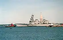 A vertical launching system (VLS) was installed in January 1990[7] during a major overhaul at Avondale Shipyard. On 26 September 1991, the ship departed for a six-month deployment to the Persian Gulf with the Eisenhower battle group, returning 26 March 1992. It was her first deployment in five years.[8]