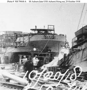 The Chester Shipbuilding Company at Chester, Pennsylvania built Auburn for the United States Shipping Board (USSB). She was launched in 1918 and completed in 1919.