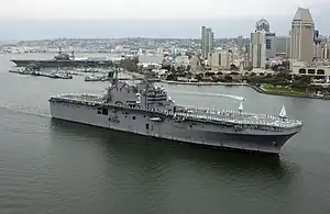 Homeported at Naval Base San Diego, California beginning in October 1978, Belleau Wood participated in her first full-scale operation in 1979 off the coast of Hawaii. In early 1979, she reported to Long Beach Naval Shipyard in Long Beach, California for a one-year engine overhaul.
