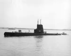USS Blenny (SS/AGSS-324), a Balao-class submarine in commission from 1944 to 1969, was a ship of the United States Navy named for the blenny, a fish found along the rocky shores of the Atlantic Ocean. During World War II, Blenny conducted four war patrols in the Java Sea and South China Sea between 10 November 1944 and 14 August 1945 . She sank eight Japanese vessels totaling 18,262 tons. In addition, she is credited with destroying more than 62 miscellaneous Japanese small craft by gunfire.