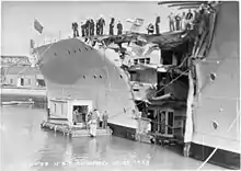 - ↑ Associated Press, "Cost of Repairs to Cruiser $200,000", The San Bernardino Daily Sun, San Bernardino, California, 25 March 1934, Volume 40, page 1.