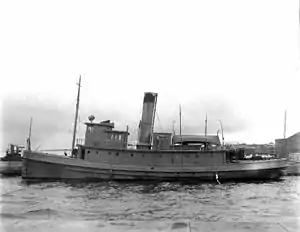On Memorial Day (30 May) 1918, Wicomico took part in a memorial ceremony, sponsored by the Daughters of the American Revolution, for all victims of World War I who died at sea, particularly victims of the sinking of RMS Lusitania. A floral wreath was thrown into the Potomac from Wicomico's deck. The former Vanderbilt steam yacht HMS Warrior also took part in the ceremony.[1]