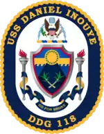USS Daniel Inouye (DDG-118) is an Arleigh Burke-class destroyer in the United States Navy. She is named to honor former United States Senator Daniel Inouye of Hawaii.[1] Inouye was awarded the Medal of Honor for his actions in Tuscany, Italy, during World War II.[1] She is part of Destroyer Squadron 31 of Naval Surface Group Middle Pacific.[7]