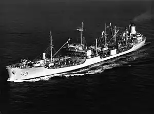 USS Elokomin (AO-55) was a Cimarron-class fleet oiler acquired by the U.S. Navy during World War II. She served her country primarily in the Atlantic Ocean, Mediterranean Sea, and the North Atlantic Ocean Theatre of Operations, and provided petroleum products where needed to combat ships.