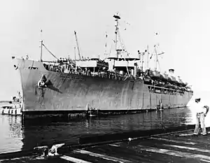 USS General D. E. Aultman (AP-156) was a General G. O. Squier-class transport ship for the U.S. Navy in World War II. The ship was crewed by the U.S. Coast Guard throughout the war.[2] She was named in honor of U.S. Army general Dwight Edward Aultman. She was transferred to the U.S. Army as USAT General D. E. Aultman in 1946. On 1 March 1950 she was transferred to the Military Sea Transportation Service (MSTS) as USNS General D. E. Aultman (T-AP-156). She was later sold for commercial operation under the name SS Portland, before being scrapped some time after October 1986.[1]