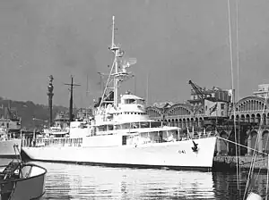 Greenwich Bay departed Norfolk on 30 April 1949 to assume duties as flagship for the Commander of the U.S. Navy Middle East Force. Every year thereafter she repeated this duty, sailing through the Mediterranean to operate as flagship in the Red Sea, Persian Gulf, and Indian Ocean for 4 to 6 months. In total Greenwich Bay made fifteen Mediterranean deployments. During most of this period, she performed these duties in rotation with two other Barnegat-class ships, USS Duxbury Bay (AVP-38) and USS Valcour (AVP-55). These three ships were dubbed the "little white fleet", in reference to the white paint jobs they shared to counter the region's extreme heat.