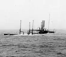 ![]() Off the Cavite Navy Yard, Philippine Islands, circa March 1915, with submarines A-3, A-5 and B-1 on deck, after transporting them out from the United States. - B-1 is on Hector's starboard side. The two A-boats are in the center and port side cradles. | |