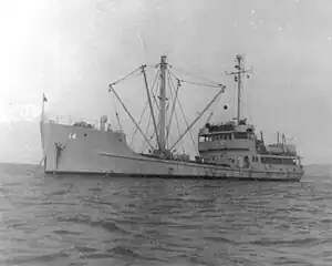 USS Hewell (AG-145/AKL-14) was a Camano-class cargo ship constructed for the U.S. Army as FS-391 shortly before the end of World War II.[1] FS-391 operated with a U.S. Coast Guard crew in the Southwest Pacific area.[2] The ship was acquired by the U.S. Navy in 1948. She was configured as a transport and cargo ship and served with the U.S. Pacific Fleet – including highly decorated service during the Korean War – until decommissioned in 1955.[1]