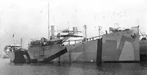 ![]() USS Hickman (ID-3554), probably at the time of her completion and delivery to the United States Navy in mid-November 1918. She is painted in dazzle camouflage. | |