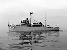 After shakedown and individual ship training out of Long Beach, California, during 1954, the ship entered Long Beach shipyard for extensive modifications October 1954 to February 1953. She was reclassified MSO-448 7 February 1955. She continued to operate out of Long Beach, taking part in a major U.S. Pacific Fleet training exercise in November 1955. For the next year she trained in California waters.