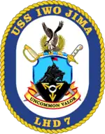 The ship's motto, "Uncommon Valor", is based on Fleet Admiral Chester W. Nimitz's words when he spoke of Sailors and Marines who fought at Iwo Jima: "Among the Americans who served on Iwo Jima, uncommon valor was a common virtue."[18]
