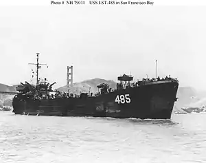 ![]() USS LST-485, underway in San Francisco Bay, California, c. 1946. | |