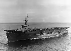 USS Matanikau (CVE-101) was a Casablanca-class escort carrier of the United States Navy. She was named after the Actions along the Matanikau, a series of engagements during the Guadalcanal campaign. Built for service during World War II, the ship was launched in May 1944, and commissioned in June, and served as a training and transport carrier. Notably, some 1,332 aviators earned their qualifications on-board the carrier. Postwar, she participated in Operation Magic Carpet. She was decommissioned in October 1946, when she was mothballed in the Pacific Reserve Fleet. Ultimately, she was sold for scrapping in July 1960.