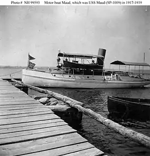 ![]() USS Maud (SP-1009) sometime between 1917 and 1919. A pilothouse has been added to her for her naval service. | |