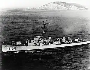 On 17 November 1954 McGinty sailed on her third Cold War deployment to the Far East. During the remainder of the year, she patrolled the Sea of Japan off Korea, and on 1 January 1955, she transferred this peacekeeping duty to ships of the Republic of Korea's Navy in a ceremony at Pusan. She continued to support "keeping the peace" missions of the 7th Fleet. In February 1955, she served in the screen for the Mobile Replenishment Group, which supported the 7th Fleet during the timely and successful evacuation of the Tachen Islands. This display of U.S. seapower permitted the removal of Chinese Nationalists from an untenable position on the coastal islands along the mainland of China, and was called "the most forthright U.S. action against communism since the Korean War".