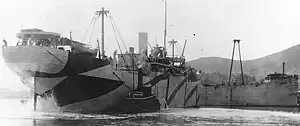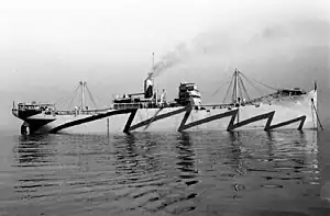 ![]() SS Nantahala at anchor on 30 October 1918 during her sea trials. She is painted in dazzle camouflage. | |