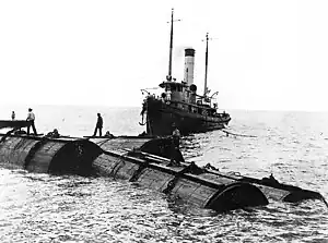 USS Navajo assists with the salvage of USS F-4 (SS-23), April–August 1915.