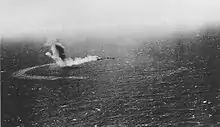 The next day at 1000, Japanese search planes spotted the two ships and misidentified them as a carrier and her escort.[1] 78 aircraft from Shōkaku and Zuikaku soon arrived and began searching in vain for the "carrier" force. Eventually, they gave up and returned to sink Sims and leave Neosho—victim of seven direct hits and a suicide dive by one of the bombers—ablaze aft and in danger of breaking in two. She had shot down at least three of the attackers.[1] One of her crewmen, Oscar V. Peterson, was posthumously awarded the Medal of Honor for his efforts to save the ship in spite of his severe injuries suffered in the attack.[2][3]